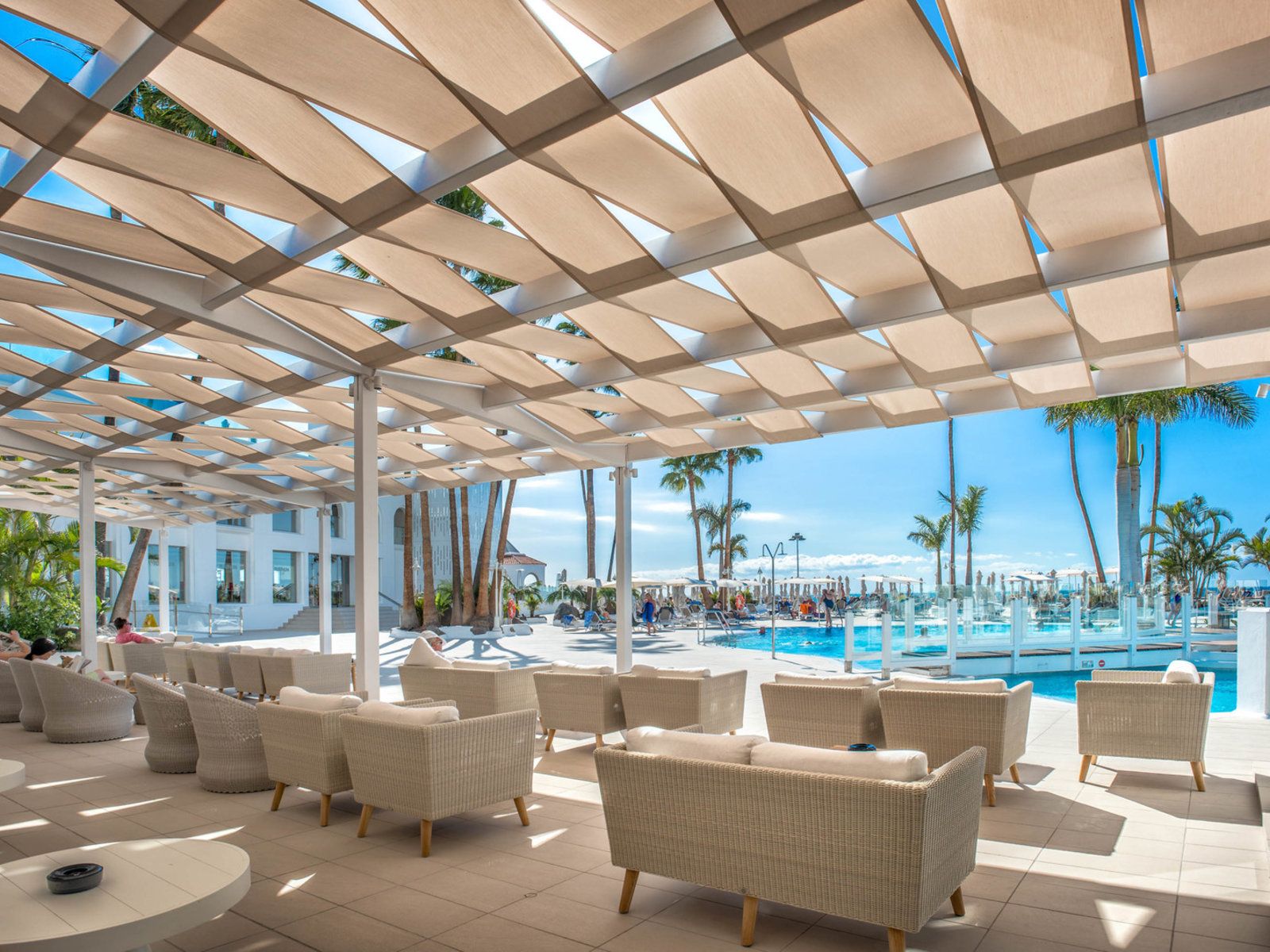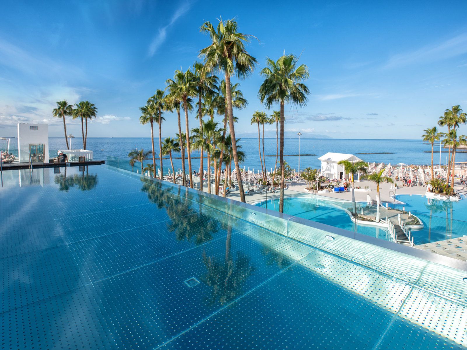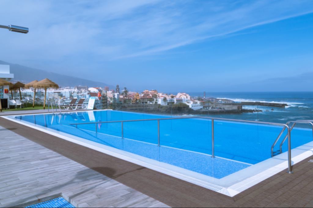 Highlight ist die Dachterrasse mit beheizbarem Pool (saisonal), Whirlpool und Sonnenterrasse. Das Restaurant „Kontiki Lunch“ serviert Snacks und Getränke mit Blick auf Atlantik, Teide und Küste. Weitere Entspannungsmöglichkeiten bieten eine Sonnenterrasse und ein Whirlpool im Garten.